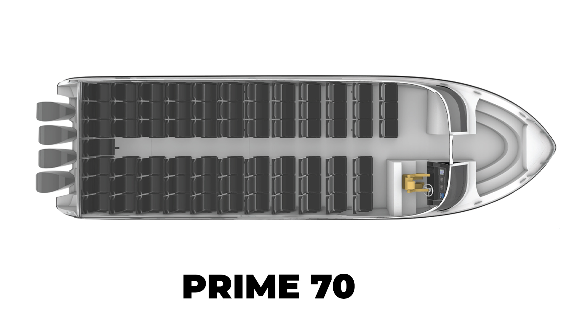 The Marine Master 49 PRIME 70 is the latest high-performance speedboat, crafted for an unmatched experience on the water. Featuring the innovative PRIME 70 design, this model boasts a central entrance from the middle ship, enhancing accessibility and flow. It also offers ample storage and luggage compartments, perfect for longer journeys. With a capacity of up to 70 passengers plus the crew, the Marine Master 49 PRIME 70 combines luxury and practicality. Powered by four 350-horsepower engines, it can reach speeds between 45 and 50 knots, ensuring thrilling performance. The interior is exquisitely finished, offering a comfortable and elegant ambiance, making every voyage enjoyable and memorable.